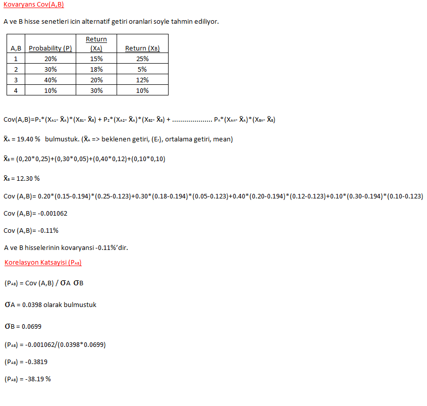 Bu bakımdan yatırımcı getirisi aynı olan iki hisseden varyans ve standart sapması daha küçük olanı alacaktır.